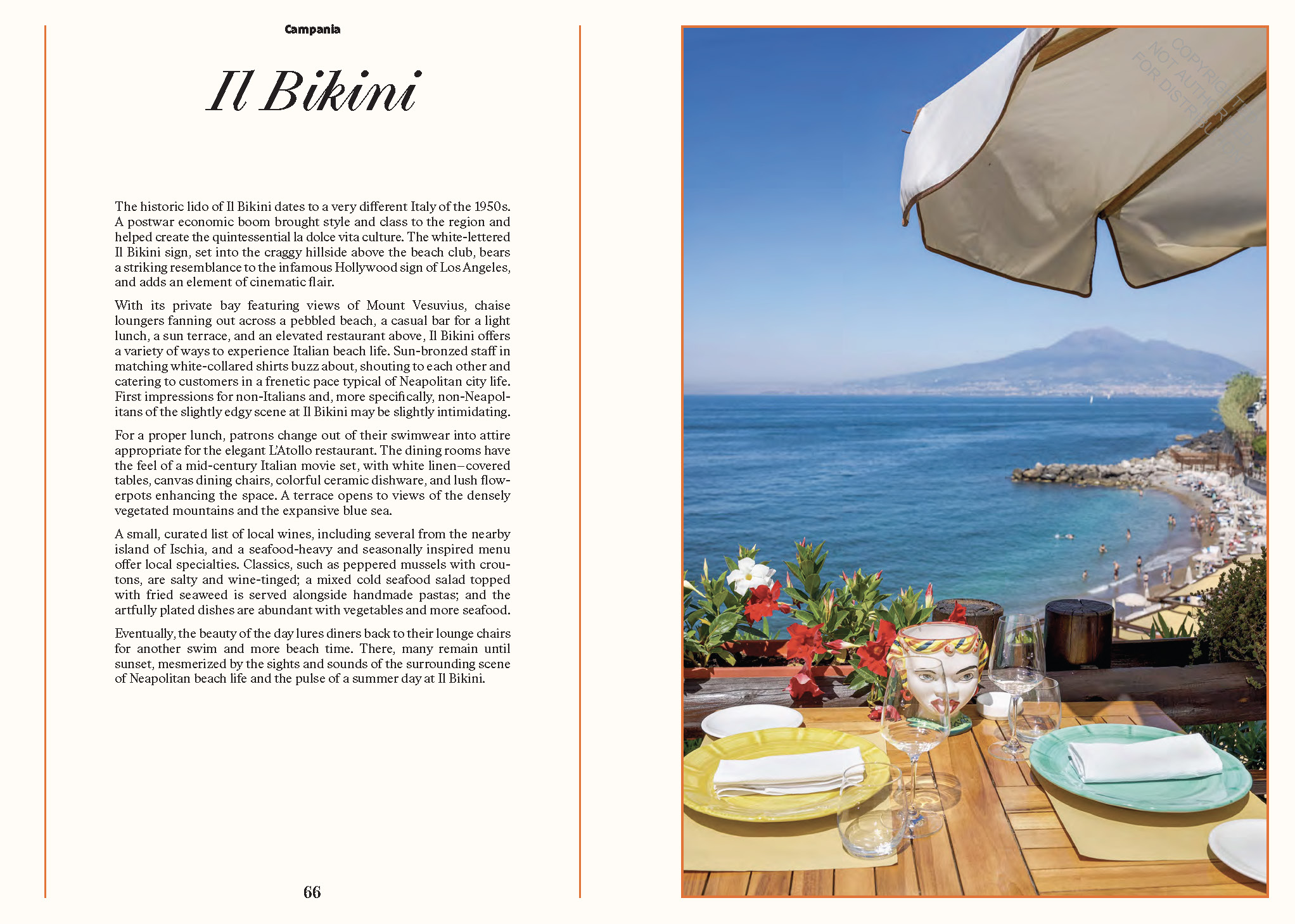 Our third book, Lido, will be published in March 2026. Equal parts lifestyle book and cookbook, Lido explores the vibrant world of the Italian beach club. For research, we traveled across Italy with our daughter, experiencing firsthand the wonders of a day spent relaxing at an Italian beach club, and the splendor of the Italian seaside table. From frothy morning cappuccinos to heaping platters of freshly fried local fish, and twilight aperitivi with feet in the sand, they are a remarkable way to experience Italian beach culture.